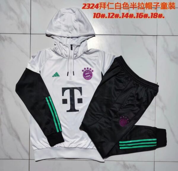 E747 23/24 Bayern short zipper white with cap kids kit 10-18